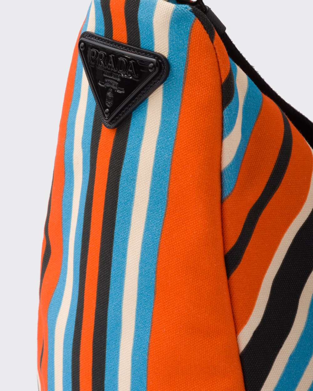 Túi tam giác printed canvas Prada được hoạt họa bằng họa tiết sọc Bayadere. Gợi nhớ đến các phụ kiện đi biển. Chiếc túi vải hình tam giác đa năng này mô phỏng lại biểu tượng hình học. Mang tính biểu tượng của Prada theo một cách mới. Và cũng có một phiên bản in nổi ở mặt trước. Được xác định bằng dây đeo vai có thể điều chỉnh được để đeo theo nhiều cách khác nhau. Thiết kế này là một phần của bộ sưu tập hiện đại. Và tổng hợp gợi nhớ các nguyên mẫu của hình ảnh bãi biển.