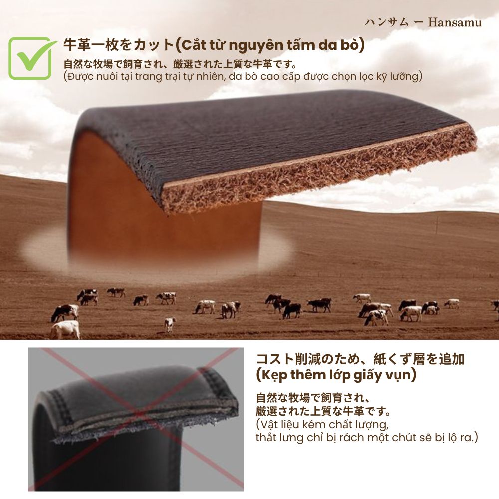 Chất liệu: 二層牛革 (Da bò lớp thứ hai)