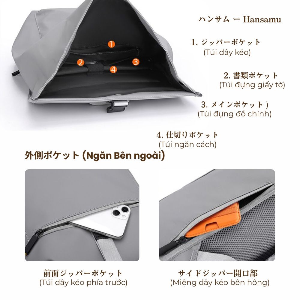 Với chất liệu chống nước, cấu trúc bền bỉ, cùng khoang chứa thông minh cho laptop và vật dụng cá nhân, Hansamu Tora đáp ứng tốt cả nhu cầu công việc lẫn di chuyển.